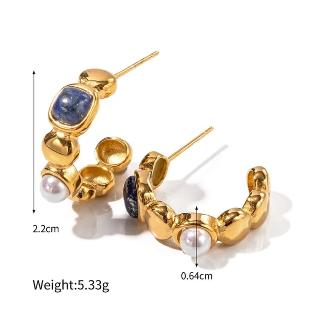 Gold-Based Half Hoops Featuring A Blue Stone And White Pearl, Designed For A Refined Yet Modern Everyday Look.