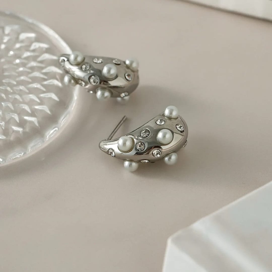 Elegant Silver Earrings Accented With A Pearl And Stone, Designed To Add Refined Charm To Everyday And Festive Looks.